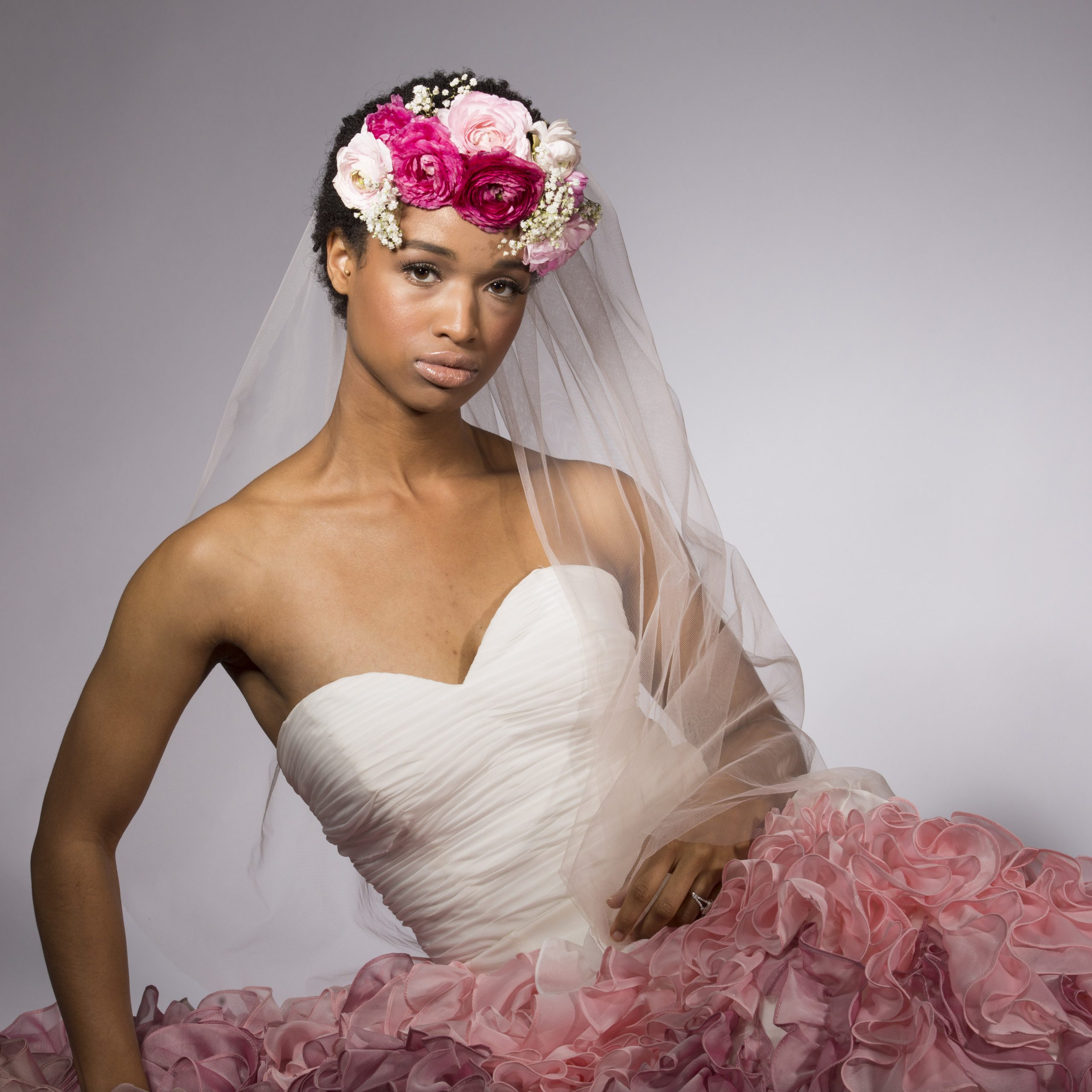 EMPIRE – This gown is flattering because it creates a long line and disguises the hips. Extending from the bust line, this shape is youthful and elegant.