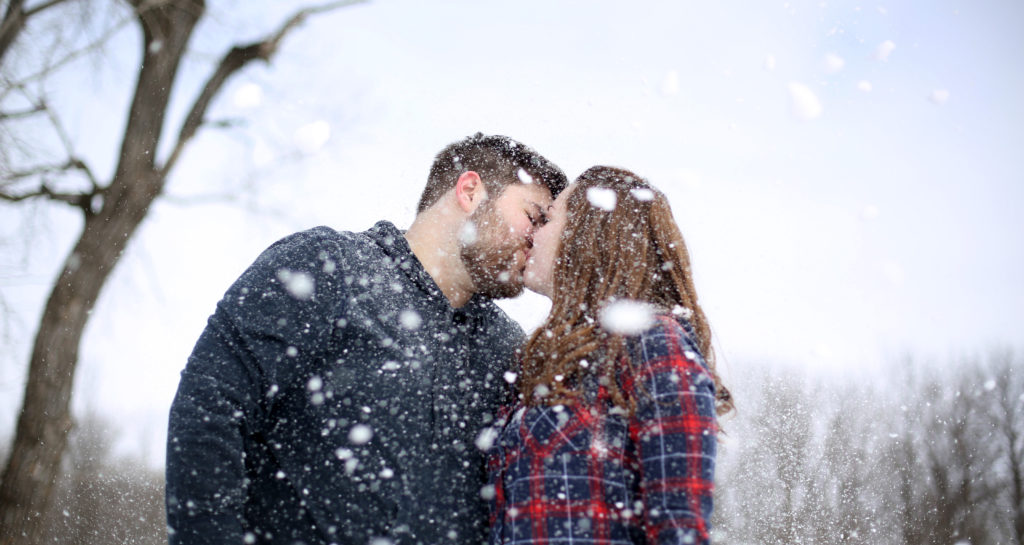 Samantha Phelan and Blake Headley waited until just after a beautiful Iowa snow for their winter engagement session with Impressions Photography. The two met while in college at Wayne State College in Nebraska.