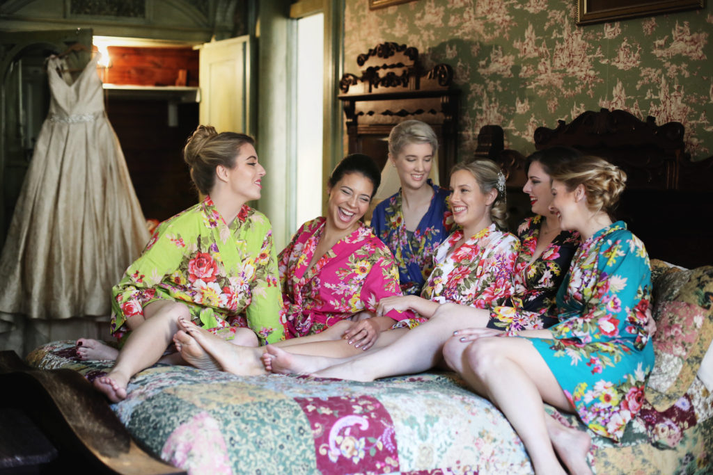 Sarah and her bridesmaids prepared for the big day at The Columns. She wore a Vera Wang ballgown and an intricate updo by Embodyment Salon. Her bouquet and ceremony flowers were designed by Fat Cat Flowers. A Lipman Design coordinated the decor for the reception and ceremony, which took place at The Columns Hotel.